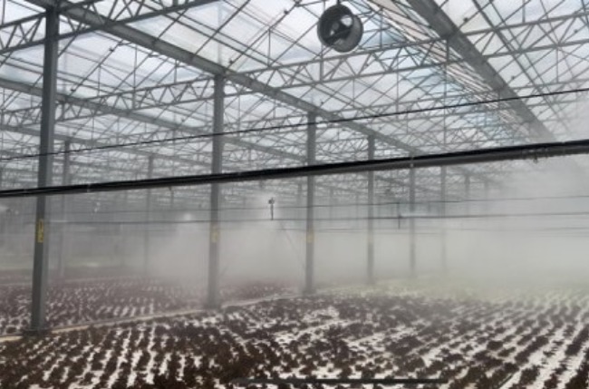 - 溫室/網室應用:該系統具備優異的加濕、防病與施肥功能,可整合環境感測器(溫濕度),自動控制造霧頻率與時段,避免水滴殘留引發病害,並穩定調節栽培空間的氣候條件,特別適用於育苗、葉菜與果菜等高經濟作物。