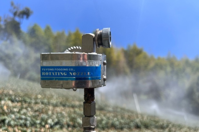 富豐多年來致力於開發高效能的霧化設備,成功研發具備高抗阻塞能力的渦旋型不鏽鋼濾網噴頭,大幅延長造霧系統壽命,降低維修負擔,深獲市場肯定。此次推出的「自動迴轉造霧系統」,更將微霧技術推向全自動化、遠端操控、精準灑藥的新紀元。