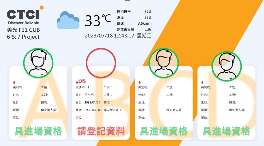 另一套系統為工地管理系統,本系統應用於工地人員的進出管理系統,此系統也可以修改成人員門禁監控系統,透過結合農業監控系統可以達到完整的門禁與環境監控整合系統。