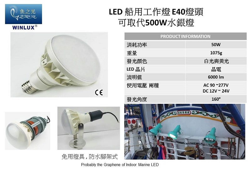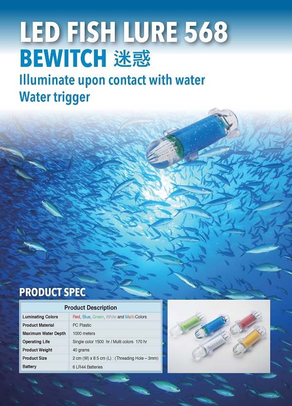 目前開發產品中已有具強項七彩燈光入水亮水中燈與專利漁勾,八字轉環等。實現市場並列漁業漁船前趨勢,第二代的入水亮於開發後被國內外市場廣泛運用遠至日本得到相當大的迴響,因此而聲名大噪, 歡迎至臺灣智慧農業週現場體驗。