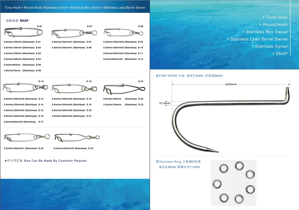 展出特色:漁具漁業、遠洋魚鉤、專業漁船燈具,歡迎至臺灣國際漁業產業展現場體驗